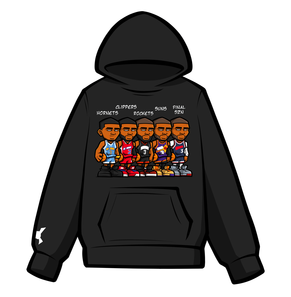 10 OZ. MEN'S BLACK HOODIE WITH A PRINT ON THE FRONT WITH CHRIS PAUL, AND WHITE LOGO ON THE RIGHT SLEEVE