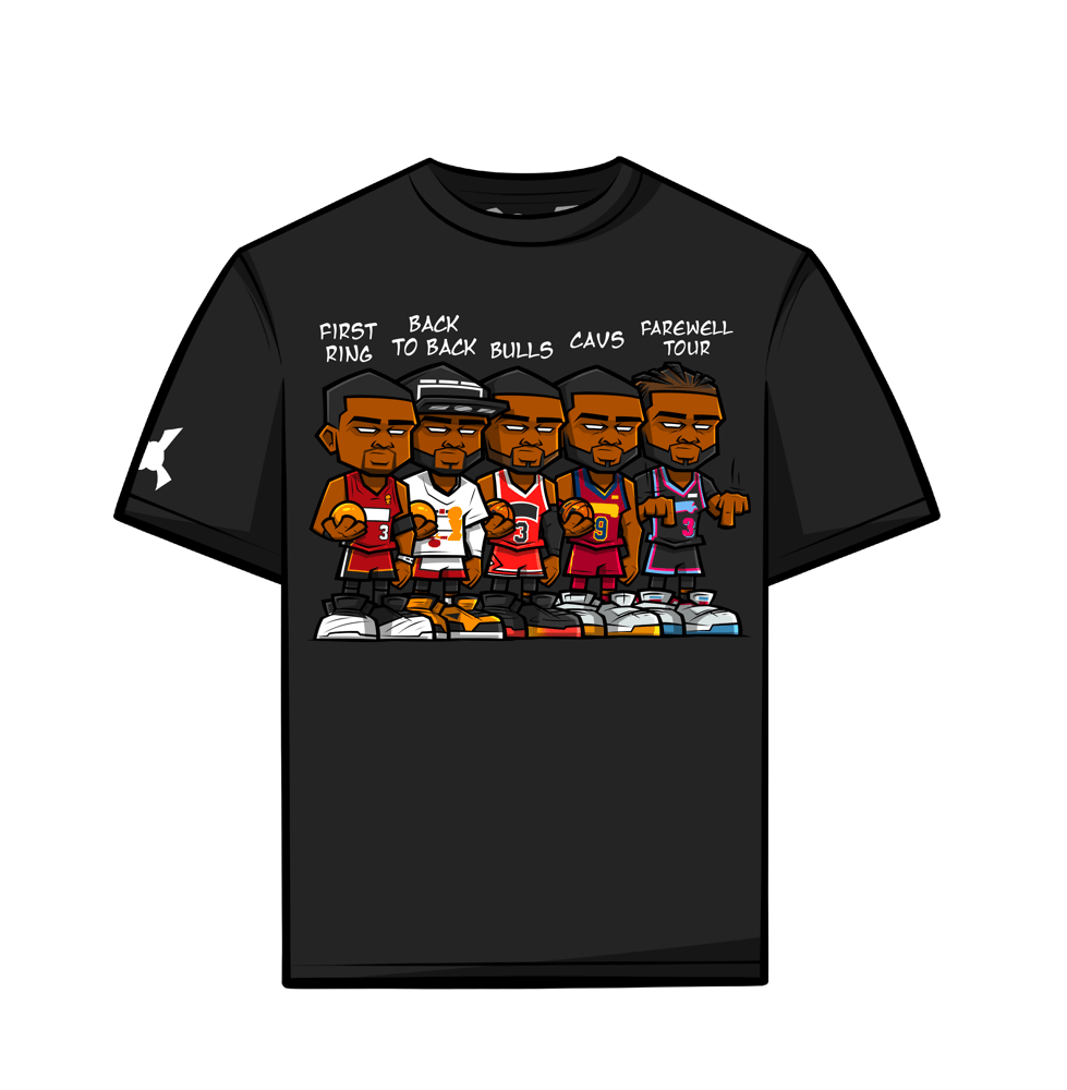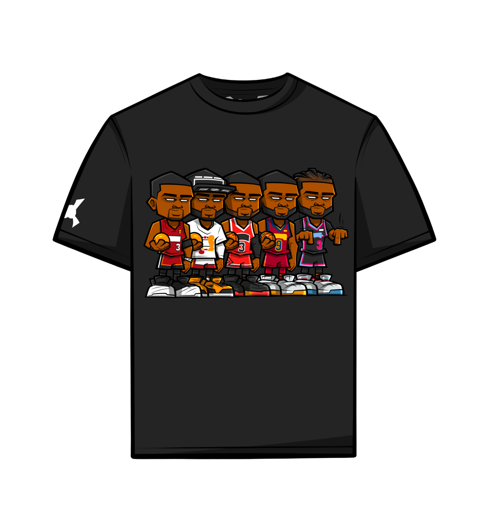 MEN'S BLACK SHIRT, WADE PRINT ON THE FRONT WITH WHITE LOGO ON THE RIGHT SLEEVE